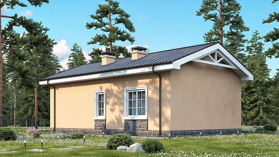 Фасад: деревянные панели 140х16 мм, имитирующие брус, с пазогребневым соединением.