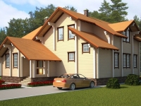 Фасад: деревянные панели 140х16 мм, имитирующие брус, с пазогребневым соединением.