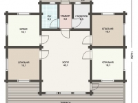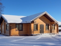Фасад: деревянные панели 140х16 мм, имитирующие брус, с пазогребневым соединением.