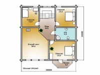 Фасад: деревянные панели 140х16 мм, имитирующие брус, с пазогребневым соединением.