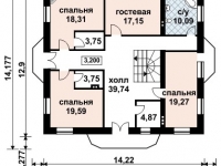 Фасад: деревянные панели 140х16 мм, имитирующие брус, с пазогребневым соединением.