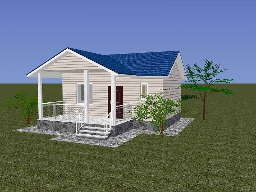 Фасад: деревянные панели 140х16 мм, имитирующие брус, с пазогребневым соединением.