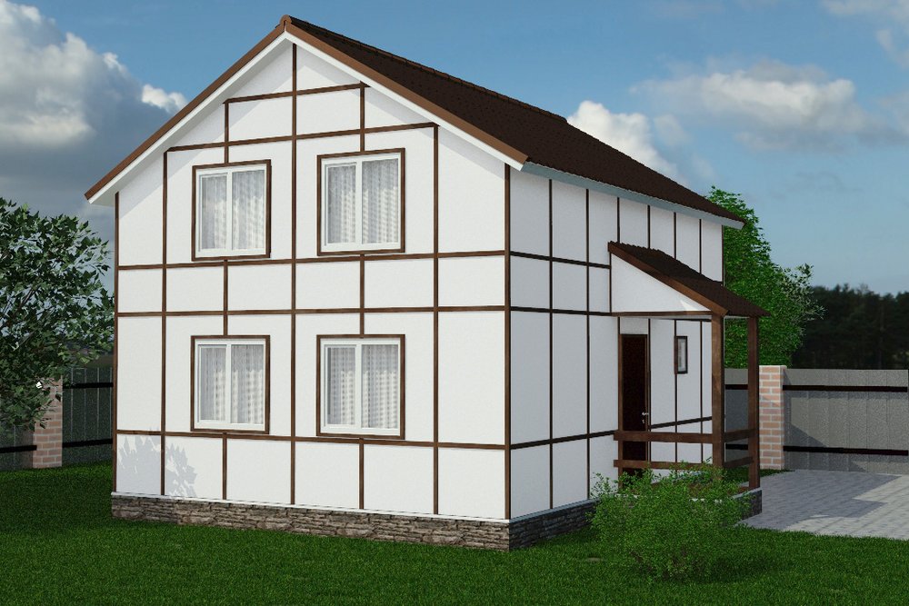 Фасад: деревянные панели 140х16 мм, имитирующие брус, с пазогребневым соединением.