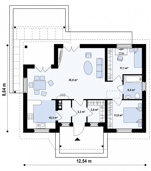 Наружные стены обеспечивают защиту от температурных перепадов, влаги и ветра. Базальтовый утеплитель и мембраны делают дом энергоэффективным. Внутренние перегородки с звукоизоляцией создают комфортную акустику.