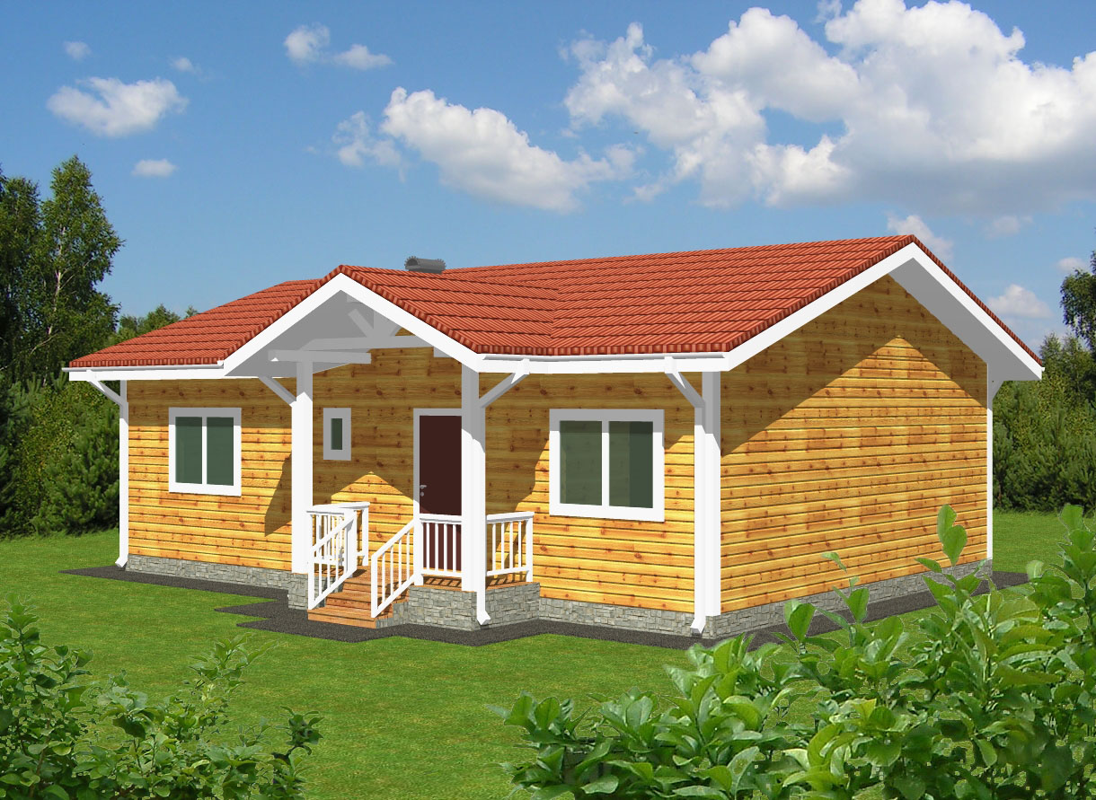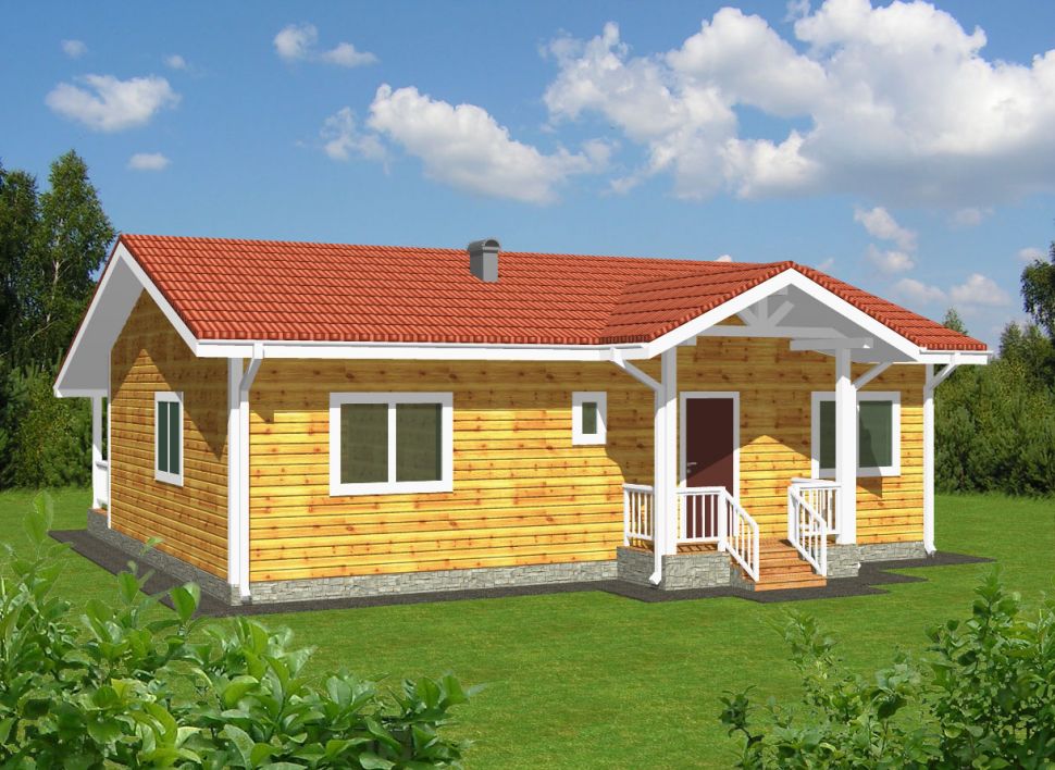 Фасад: деревянные панели 140х16 мм, имитирующие брус, с пазогребневым соединением.