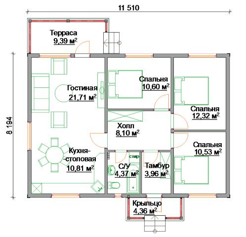 Наружные стены обеспечивают защиту от температурных перепадов, влаги и ветра. Базальтовый утеплитель и мембраны делают дом энергоэффективным. Внутренние перегородки с звукоизоляцией создают комфортную акустику.