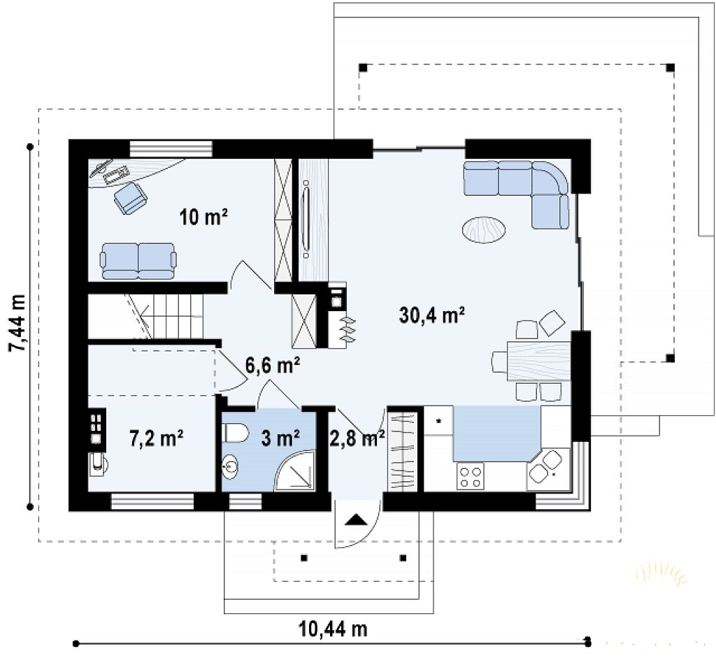 Наружные стены обеспечивают защиту от температурных перепадов, влаги и ветра. Базальтовый утеплитель и мембраны делают дом энергоэффективным. Внутренние перегородки с звукоизоляцией создают комфортную акустику.