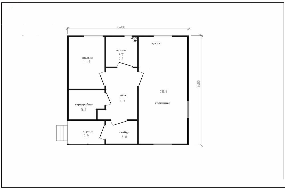 Фасад: деревянные панели 140х16 мм, имитирующие брус, с пазогребневым соединением.