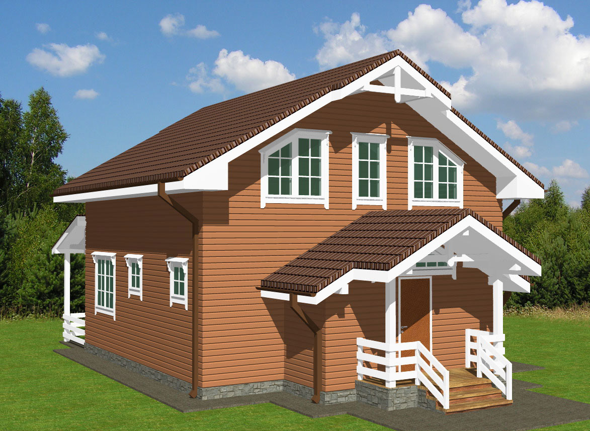Фасад: деревянные панели 140х16 мм, имитирующие брус, с пазогребневым соединением.