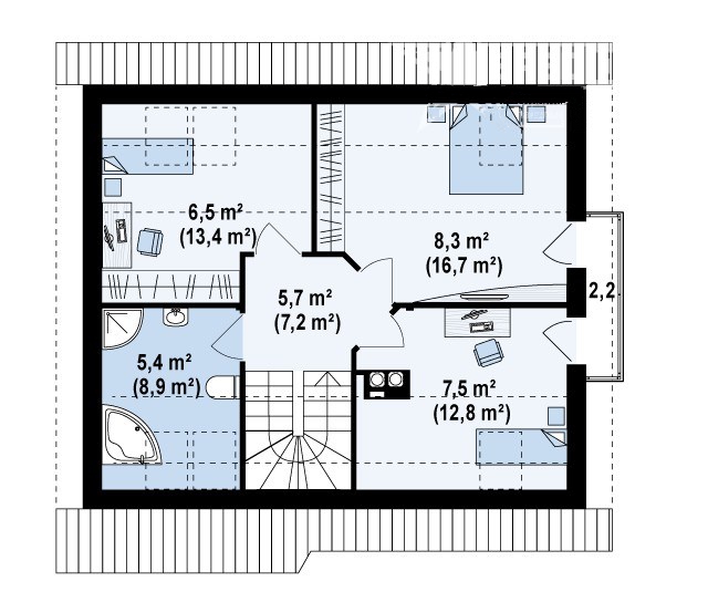 • Фасад: деревянные панели 140х16 мм, имитирующие брус, с пазогребневым соединением.