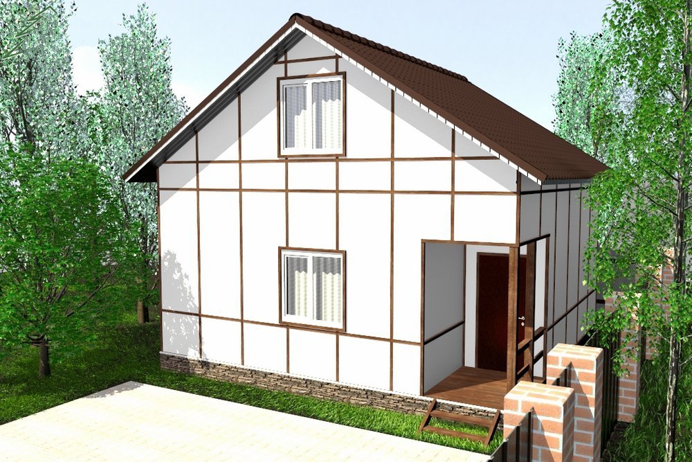 Фасад: деревянные панели 140х16 мм, имитирующие брус, с пазогребневым соединением.