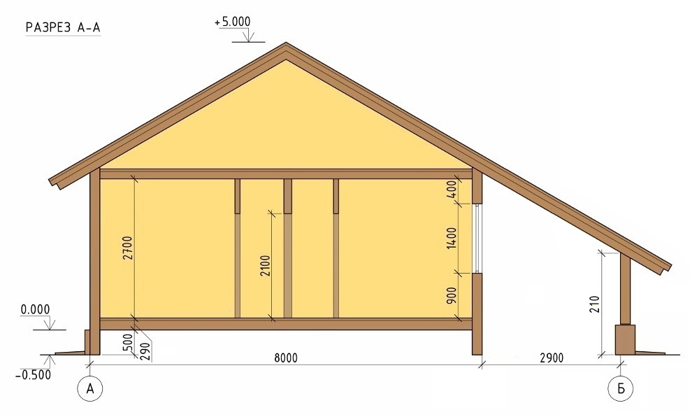 Внешние стены: одинарный каркас из доски 45х190 мм, утепление базальтовыми плитами 200 мм.
