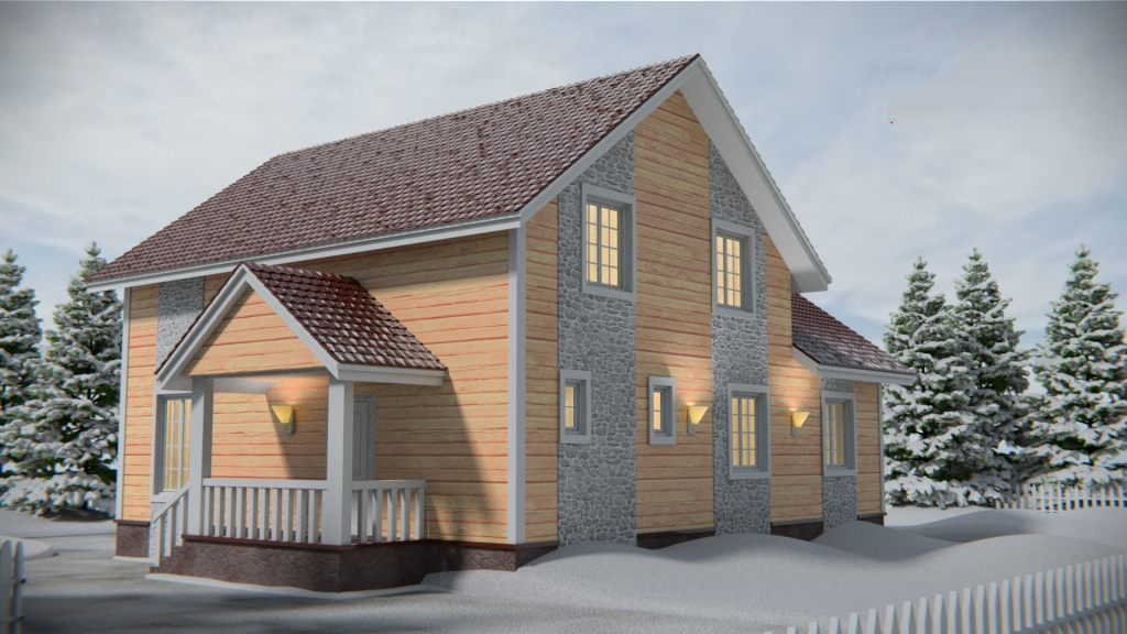 • Фасад: деревянные панели 140х16 мм, имитирующие брус, с пазогребневым соединением.