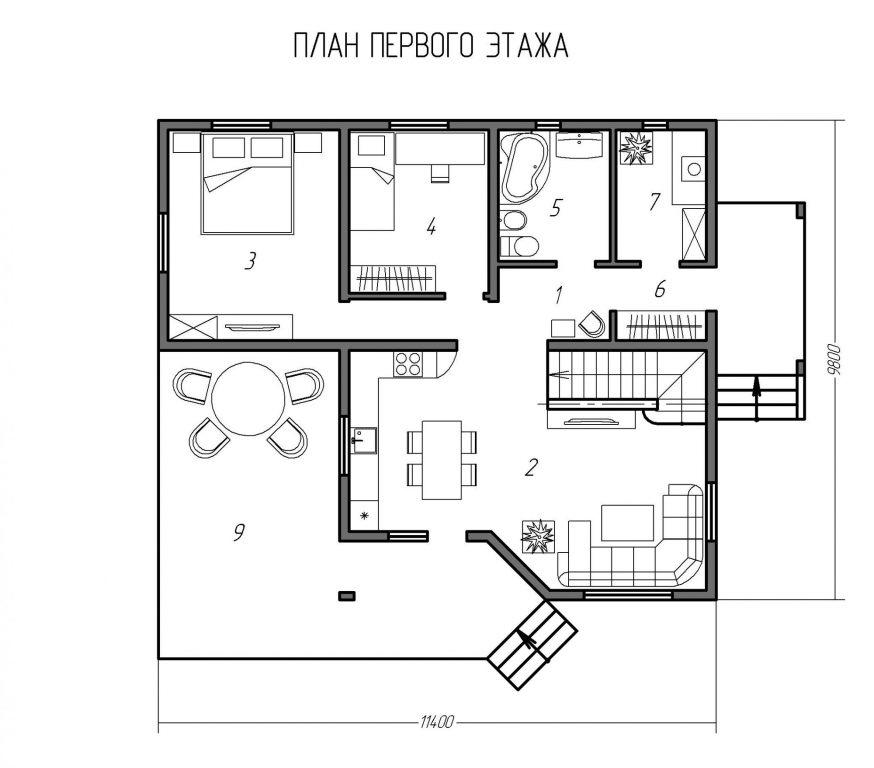 Наружные стены обеспечивают защиту от температурных перепадов, влаги и ветра. Базальтовый утеплитель и мембраны делают дом энергоэффективным. Внутренние перегородки с звукоизоляцией создают комфортную акустику.