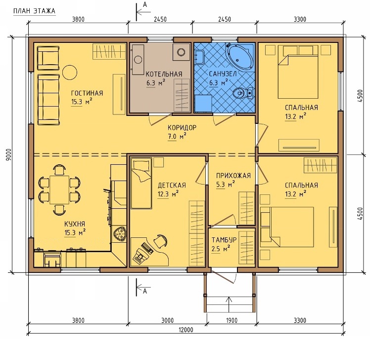 • Полы: строганная доска 45х140 мм с зазорами 4-5 мм.