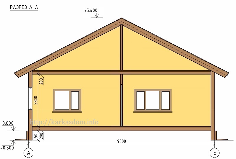 • Внутренние несущие стены: каркас из доски 45х140 мм.