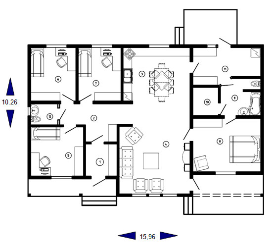 Наружные стены обеспечивают защиту от температурных перепадов, влаги и ветра. Базальтовый утеплитель и мембраны делают дом энергоэффективным. Внутренние перегородки с звукоизоляцией создают комфортную акустику.