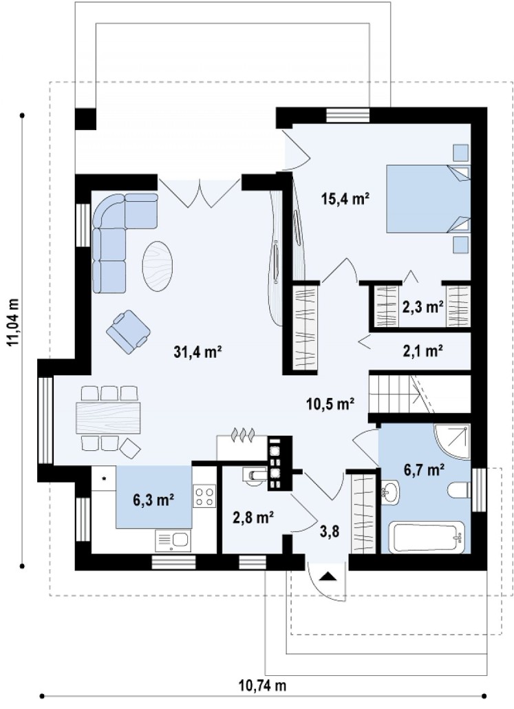Наружные стены обеспечивают защиту от температурных перепадов, влаги и ветра. Базальтовый утеплитель и мембраны делают дом энергоэффективным. Внутренние перегородки с звукоизоляцией создают комфортную акустику.