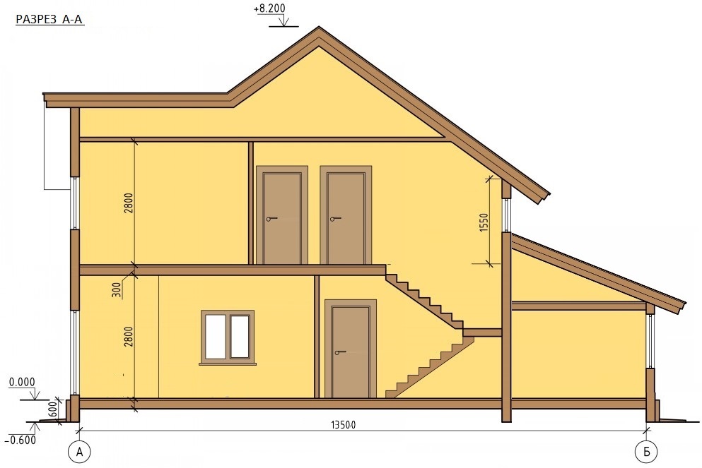 Внешние стены: одинарный каркас из доски 45х190 мм, утепление базальтовыми плитами 200 мм.