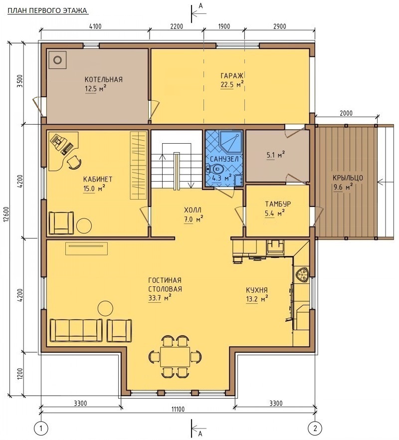 Наружные стены обеспечивают защиту от температурных перепадов, влаги и ветра. Базальтовый утеплитель и мембраны делают дом энергоэффективным. Внутренние перегородки с звукоизоляцией создают комфортную акустику.